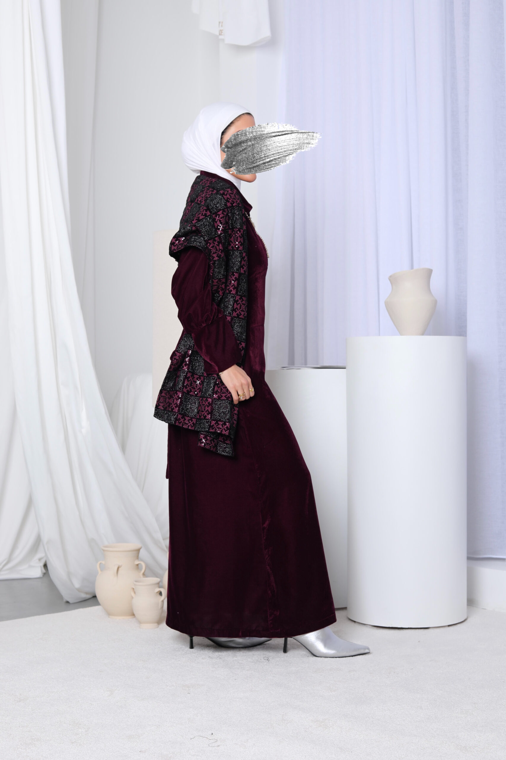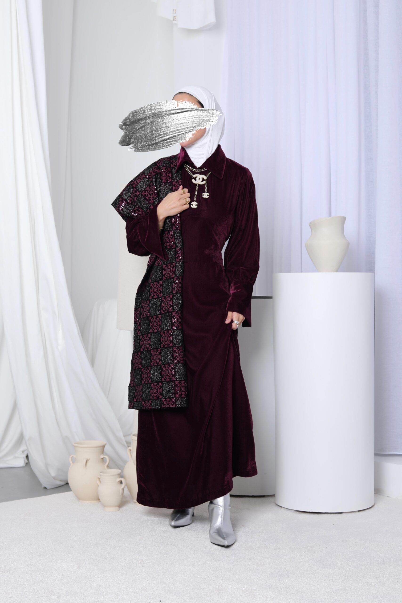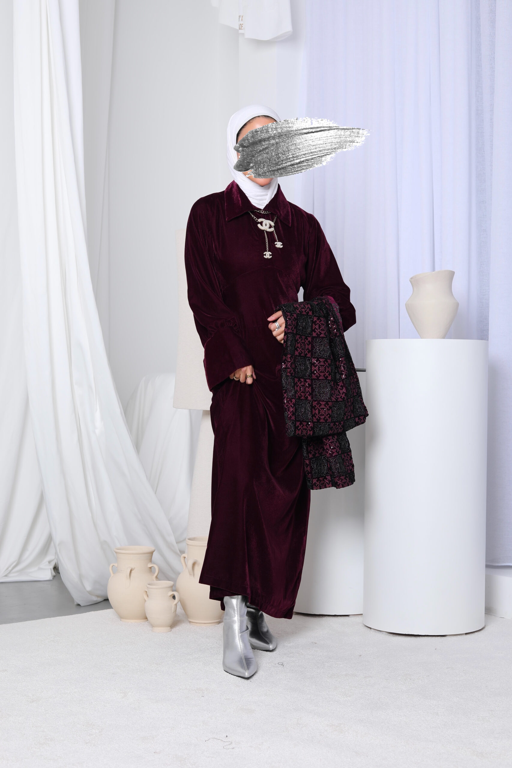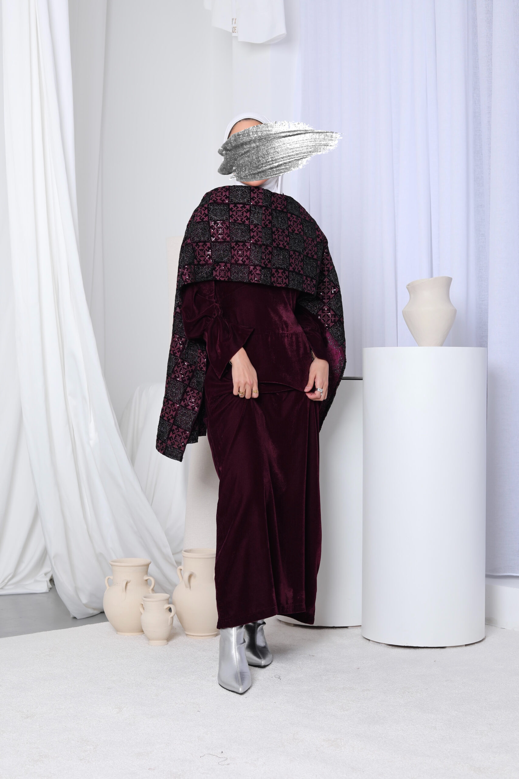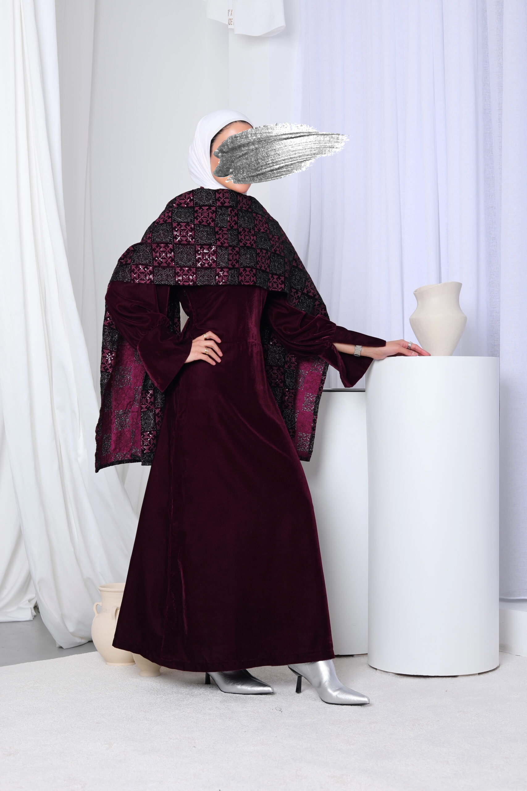 فستان مخمل + شال يدفي